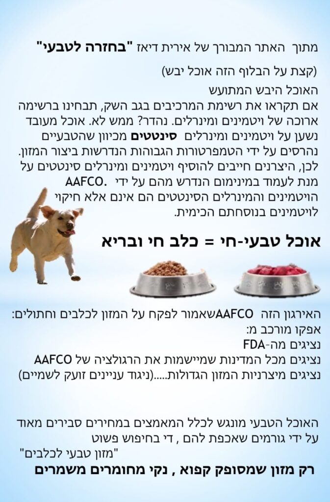 למגוון מאמרים בנושא מזון טבעי לכלב לחצו כאן